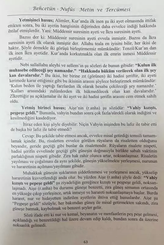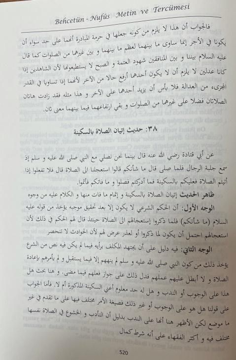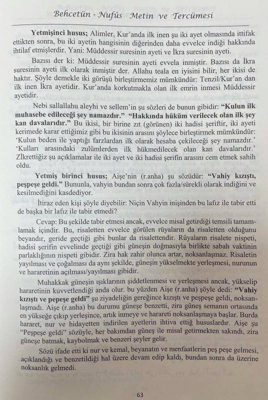 Aslına uygun olarak tercüme edilen Behcetün Nüfus eserinin bir sayfası arapça, karşı sayfası ise türkçe olarak hazırlandı.