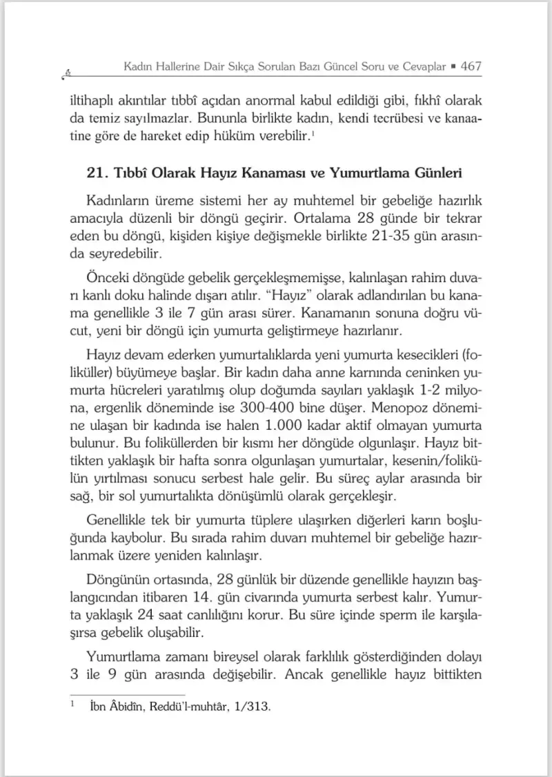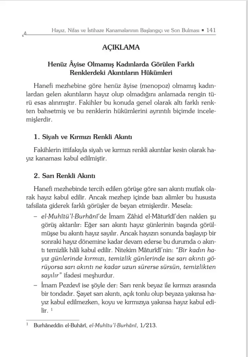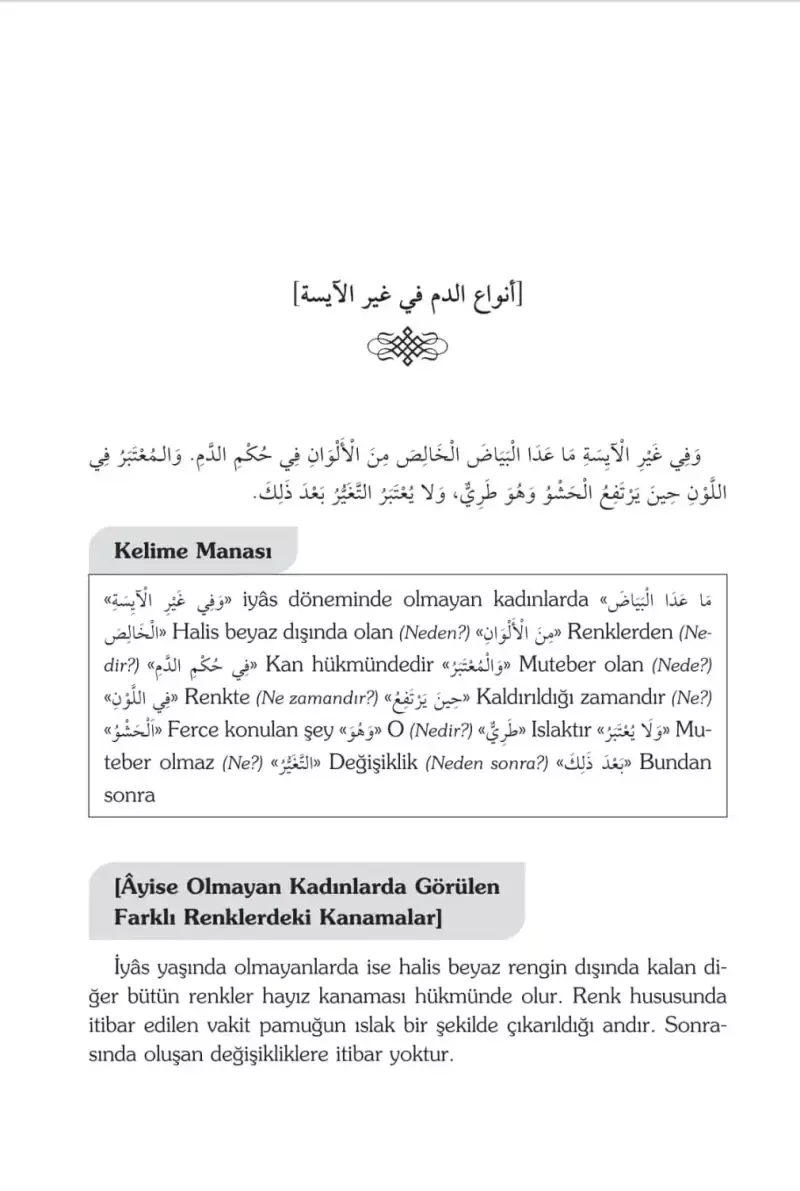 Hanefi mezhebinde muzille (adet döngüsünü unutup devamlı kanama gören kadın) ile ilgili hükümlerin uygulanması oldukça zor olduğundan, eserin sonuna Maliki mezhebine göre hayız ve nifas hükümleri ilave edilmiş ve muzille kadınların bu konuda Maliki mezhebindeki müstahâze kadın hükümlerine göre amel etmeleri tavsiye edilmiştir. Ayrıca hayızla ilgili sıkça sorulan güncel meseleler müstakil bir başlık altında soru-cevap şeklinde ele alınmıştır.