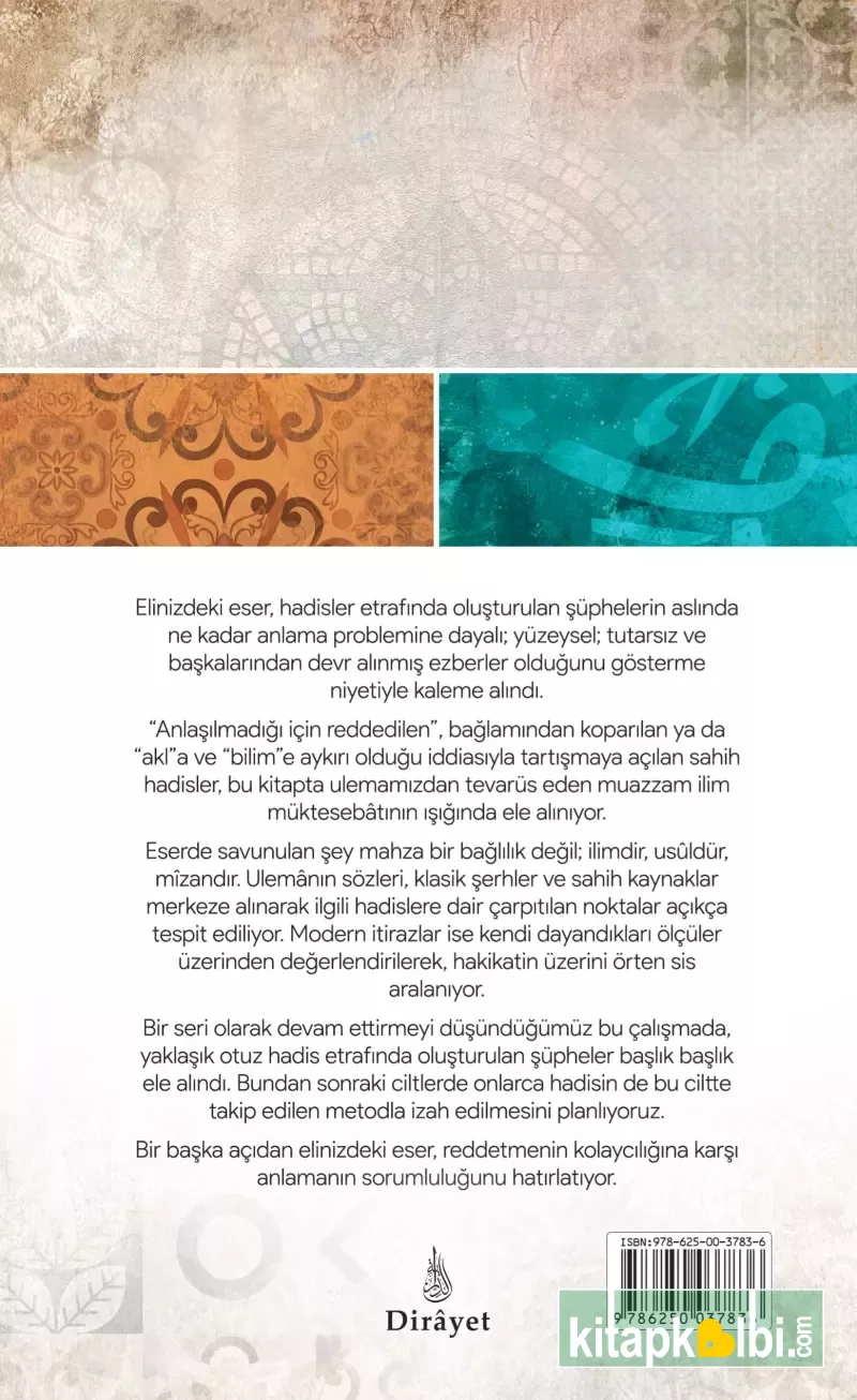 Elinizdeki eser, hadisler etrafında oluşturulan şüphelerin aslında ne kadar anlama problemine dayalı; yüzeysel; tutarsız ve başkalarından devr alınmış ezberler olduğunu gösterme niyetiyle kaleme alındı.